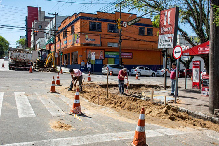 Depois da Rua Marechal Deodoro, agora é a vez da Tenente Coronel Brito, no Centro de Santa Cruz do Sul, receber canteiros nos cruzamentos. As obras iniciaram nessa terça-feira, 22, e devem seguir pelas próximas semanas. O modelo é o mesmo do já implantado na Deodoro, com plantio de flores e avanço das calçadas.