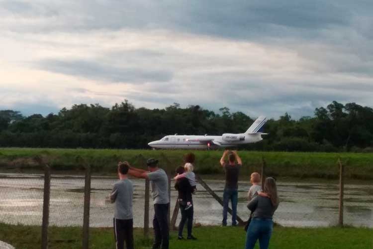 A cantora Marília Mendonça chegou a Santa Cruz do Sul no fim da tarde desta sexta-feira, 18, para a apresentação desta noite na 35ª Oktoberfest. O avião que trouxe a artista pousou no Aeroporto Luiz Beck da Silva às 18 horas. Alguns fãs aguardavam a cantora no local para pedir fotos.