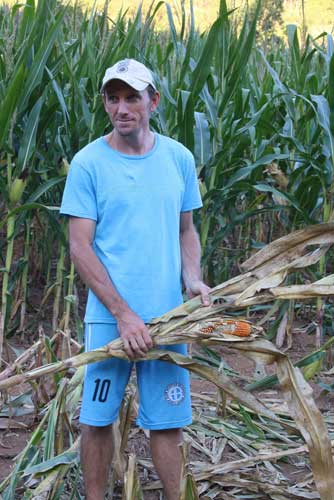 Ele cultiva cerca de 10 hectares de milho, que são usados para comércio, consumo próprio e silagem para o gado. Destes, um hectare está sendo atacado pelos grandes roedores. Com objetivo de coibir a ação dos bichos, ele chegou a instalar cerca elétrica (choque), mas não teve êxito. Na lavoura atacada, que fica a cerca de 500 metros da casa onde mora com a família, rastros e muitas pegadas são perceptíveis. Além disso, a vegetação que separa a lavoura da margem do rio está tombada e até possíveis caminhos podem ser identificados.