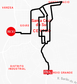 Em Santa Cruz do Sul, a saída será às 19h30 do supermercado Desco Atacado, às margens da BR-471, em frente à Rodoviária. O comboio ingressa na cidade pela Travessa Érico Veríssimo e, após, pela Rua Fernando Abott, de onde segue até a esquina com a Rua Carlos Trein Filho. Os caminhões seguem por ali até a Rótula do 2001, de onde ingressam na Rua Coronel Oscar Jost e continuam até a Avenida do Imigrante. O itinerário atravessa a avenida, faz o retorno ao lado do Monumento do Imigrante e ingressa na Rua Marechal Deodoro, dobrando na Rua Ramiro Barcelos e passando em frente à Catedral São João Batista. Os veículos seguem até a Rua Tenente Coronel Brito, nas proximidades da sede da Gazeta Grupo de Comunicações, e avançam até o fim da via, na esquina com a Rua Manoel Antônio da Barros, por onde retornam à Rua Marechal Floriano e avançam até o cruzamento com a Rua Senador Pinheiro Machado.