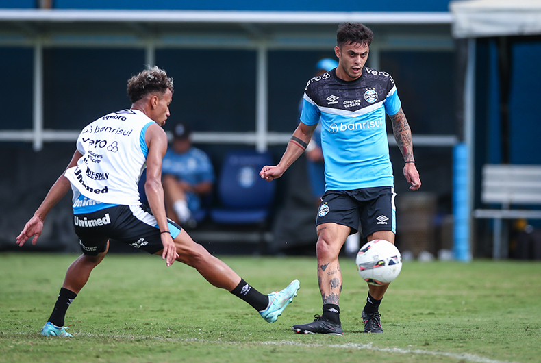 Carballo se recuperou de uma virose e deve formar dupla com Villasanti no meio-campo | Foto: Lucas Uebel/Grêmio/Divulgação/GS