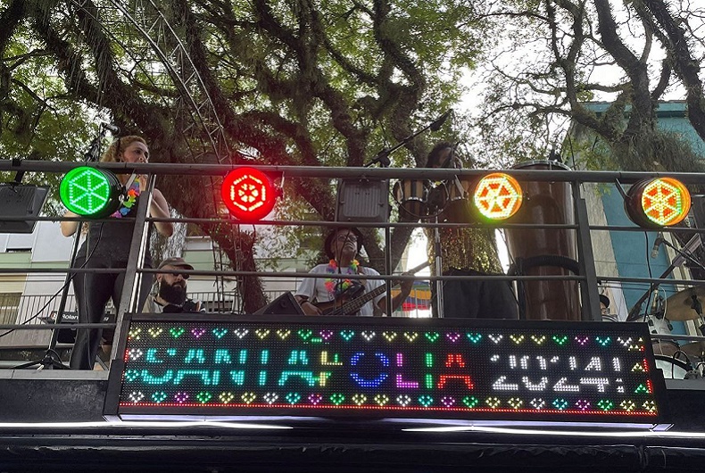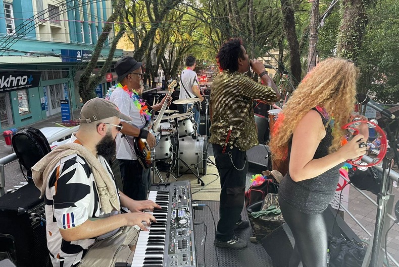 Depois de passar pela Galvão Costa, no Monumento ao Imigrante, o veículo parou em frente à Praça da Cultura. Lá, os foliões puderam aproveitar a gastronomia e bebidas comercializadas nas tendas.