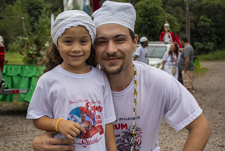 A carreata reuniu dezenas de pessoas. Uma delas era Eduardo Henz, de 22 anos. O metalúrgico estava acompanhado da filha Isabella Henz, de 5 anos. Foi a terceira vez que Eduardo participou do evento. “É uma homenagem muito bonita ao pai da casa que nos guarda todo ano”, ressaltou. Devoto há pelo menos três anos, contou que sentiu a presença de Ogum em sua vida após o nascimento da filha, fruto de uma gestação de risco. “É a nossa força, o que nos faz manter a fé todos os dias.”