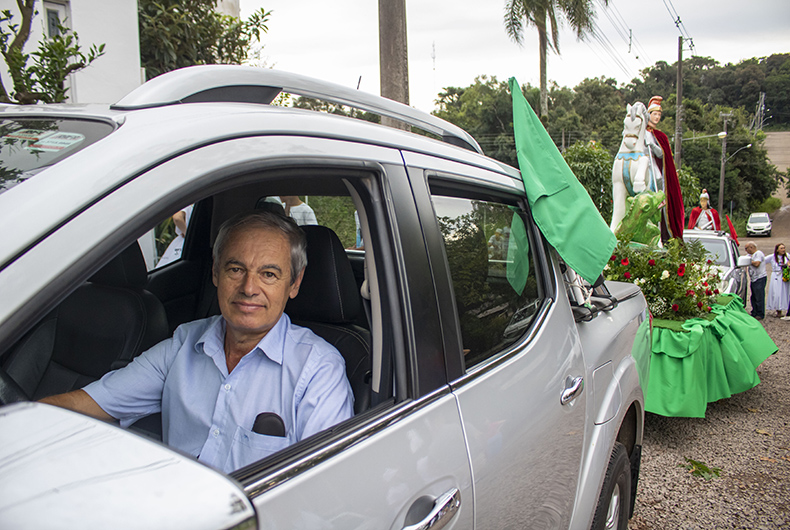 Assíduo no templo há vários anos, Sérgio Martins, de 58 anos, teve uma grata surpresa nessa carreata. Através de Mãe Lurdes, o autônomo foi convidado a dirigir o carro que levava a imagem de São Jorge pelas ruas. Sérgio não escondia a felicidade pelo momento. “Foi um presente do Pai Ogum, fiquei muito alegre.”