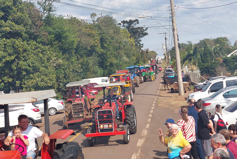 Após, a homenagem seguiu com a tradicional carreata, que teve início na frente da paróquia, passando pelas ruas centrais. Com muito buzinaço e manobras dos caminhões, o ponto alto da atividade ocorreu na rotatória do 2001, onde o padre Antonio Puhl deu a bênção com água benta, das alturas, em uma cabine presa em um guindaste. Depois disso, as comemorações continuaram no Centro Comunitário, com almoço e reunião-dançante.