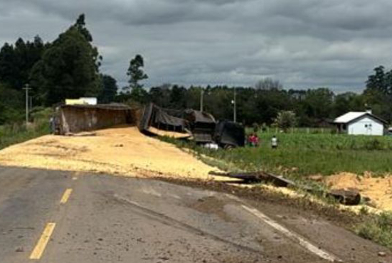 Uma carreta carregada de soja tombou na tarde deste sábado, 21, na RSC-153, em Vera Cruz. O fato aconteceu por volta das 13 horas, no quilômetro 320 da rodovia. Segundo informações do Comando Rodoviário da Brigada Militar, o condutor do veículo, um homem de 44 anos não se feriu.