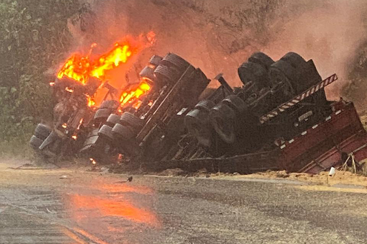 Uma carreta pegou fogo após tombar em uma curva da RSC-153, em Vale do Sol. O acidente aconteceu por volta das 14h30, no quilômetro 309 da rodovia. Segundo o Comando Rodoviário da Brigada Militar de Santa Cruz do Sul, que atende a ocorrência, o motorista conseguiu sair do veículo e não se feriu.