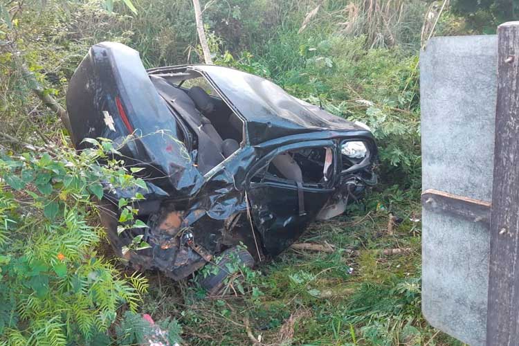 Segundo a PRF, um Prisma conduzido por um jovem de 25 anos acabou invadindo a pista contrária, batendo em uma placa e capotando. Os dois ocupantes do carro ficaram feridos e foram encaminhados para atendimento médico pelo Serviço de Atendimento Móvel de Urgência (Samu).