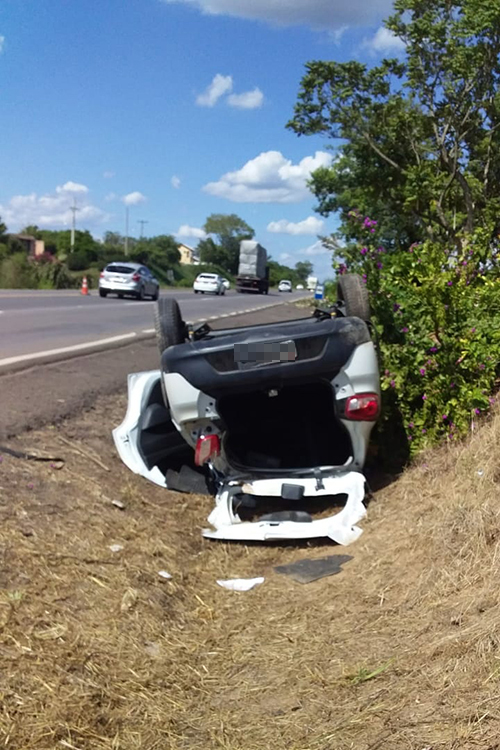 No carro estavam um homem de 33 anos, de Santa Maria, e uma mulher de 26, da Bahia. O carro ficou tombado e o Corpo de Bombeiros de Venâncio Aires utilizou o desencarcerador para retirar as vítimas em segurança. Eles não ficaram presos nas ferragens.