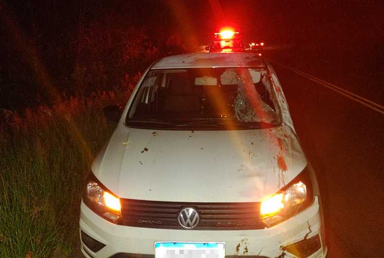 O condutor do carro saiu ileso. Já o animal, que estava solto sobre a pista, ficou ferido.