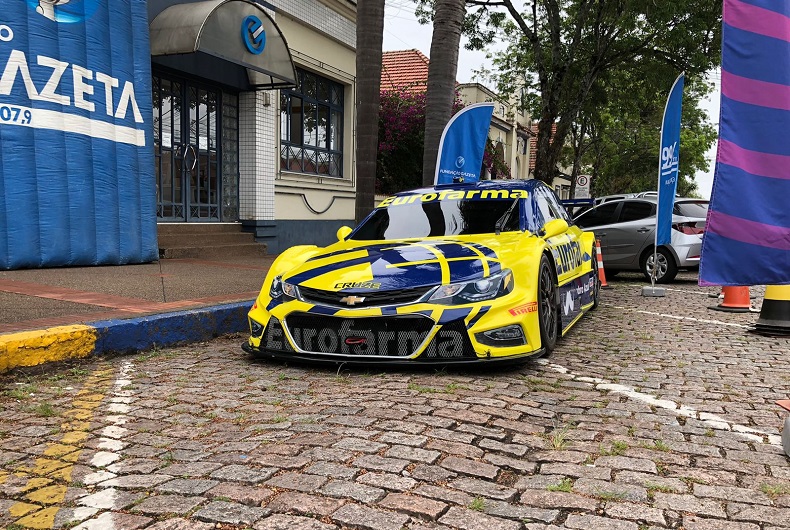 Santa Cruz do Sul recebe no próximo domingo, 21, mais uma etapa da Stock Car Pro Series. Antecipando a emoção do fim de semana, os santa-cruzenses puderam ter um gostinho do evento na manhã desta quinta-feira, 18. No estacionamento ao lado da Gazeta, na Rua Ramiro Barcelos, um dos carros da Stock Car Pro Series chamou a atenção de quem passava e atraiu os apaixonados por automobilismo.