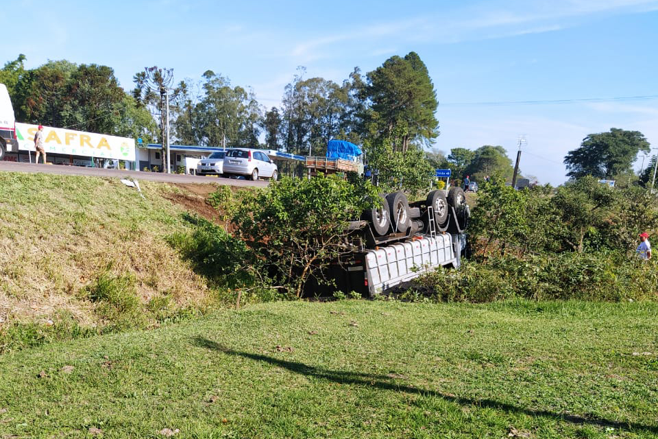 Segundo relatos de pessoas que acompanharam a situação, o carro acabou fora da pista enquanto o caminhão tombou em uma das laterais da rodovia. Ainda não há detalhes sobre a situação dos motoristas nem sobre as circunstâncias do acidente, mas informações preliminares dão conta de que o condutor do caminhão teve ferimentos leves no ombro.