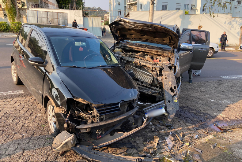 Uma grave colisão entre um carro Volkswagen Fox e uma camioneta Ford Ranger foi registrada na manhã desta quinta-feira, 1º, em Santa Cruz do Sul. O fato ocorreu por volta das 8h30, no cruzamento das ruas Juca Werlang e Vereador Benno João Kist, no Bairro Santo Inácio. Apesar da gravidade do acidente, não houve feridos.