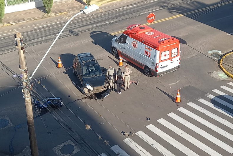 Uma colisão envolvendo um carro e uma motocicleta foi registrada na manhã desta quinta-feira, 6, por volta das 7h30, no cruzamento das ruas Carlos Trein Filho e Galvão Gosta, entre os bairros Centro e Goiás, em Santa Cruz do Sul. O condutor da moto sofreu lesões nas pernas devido ao acidente.