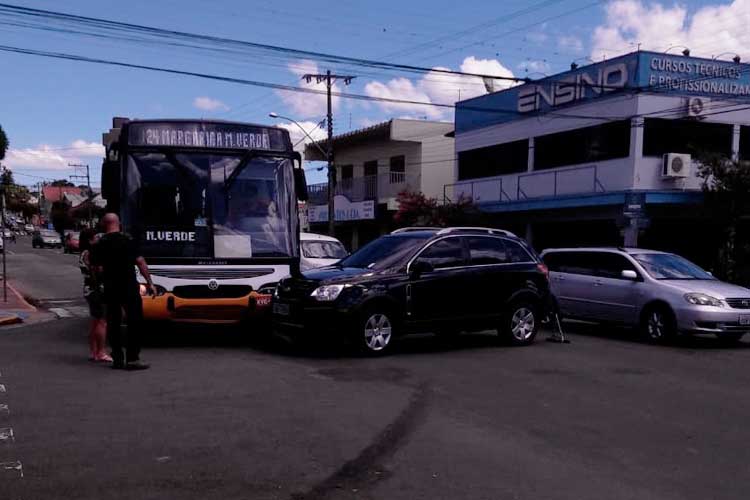Um carro e um ônibus colidiram no começo da tarde desta quinta-feira, 7, no Centro de Santa Cruz do Sul. Conforme informações preliminares, o acidente aconteceu na esquina das ruas Venâncio Aires e Fernando Abott, por volta das 13h35. Uma Captiva, com placas de Santa Cruz, e um coletivo do Consórcio TCS, se envolveram na colisão. Ninguém ficou ferido e não há informações sobre as circunstâncias do acidente.