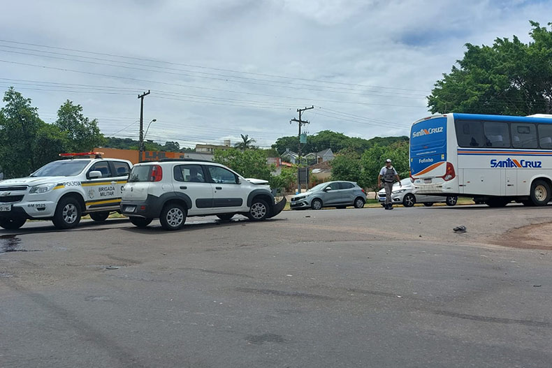 Um acidente entre um carro e um ônibus alterou o trânsito na Avenida Castelo Branco, em Santa Cruz do Sul. A colisão aconteceu por volta das 13h30, no cruzamento da via com a Rua Acre, e envolveu um Fiat Way e um ônibus da Viação União Santa Cruz.