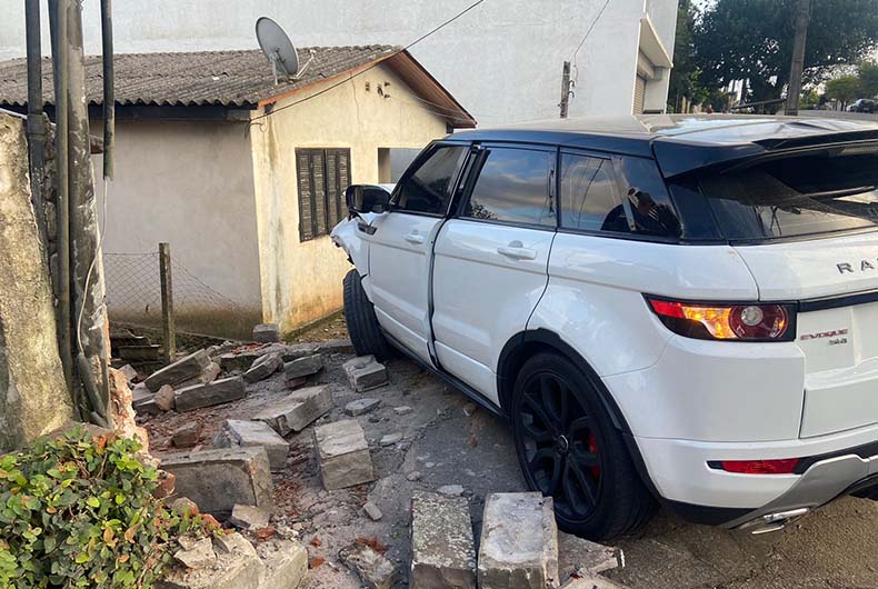 Um carro invadiu parte do pátio de uma casa na manhã deste domingo, 1º, em Santa Cruz do Sul. Por volta das 7h45, uma Range Rover Evoque, com placas do município, descia a Rua Senador Pinheiro Machado em alta velocidade e não conseguiu parar no entroncamento com a Rua São José.