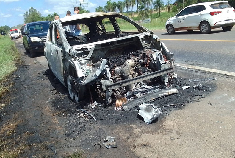 Um carro foi destruído por um incêndio na manhã desta quarta-feira, 21, na RSC-287, em Venâncio Aires. O fato foi registrado no quilômetro 83 da rodovia, por volta das 10 horas. O veículo Pegeout, com placas de Santa Cruz do Sul, foi completamente destruído.