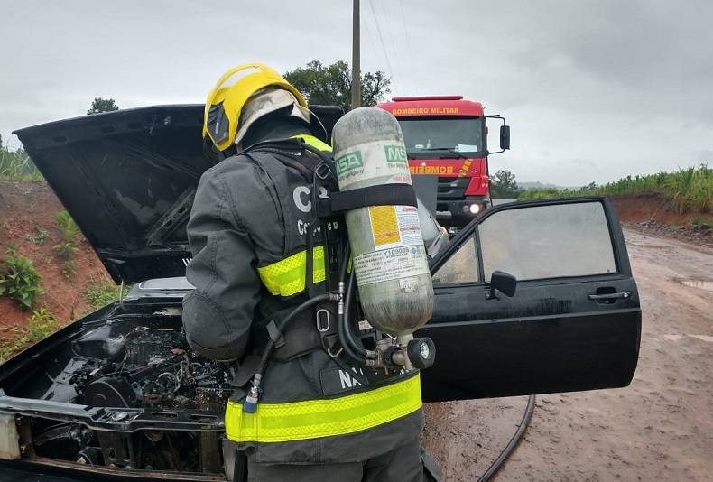 O condutor relatou que seguia para Linha Tangerinas quando o incêndio começou no motor. Ninguém ficou ferido.