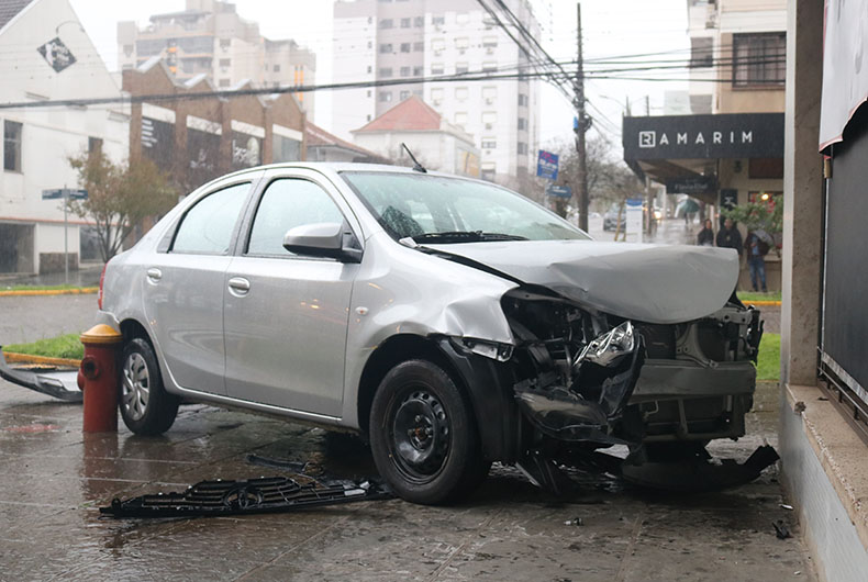 Segundo informações da Brigada Militar, o motorista de um Ford Ka disse que seguia pela Rua 28 de Setembro e ao cruzar a sinaleira com a Deodoro teria tido a frente cortada por um Toyota Ethios. Com o impacto, o Ethios subiu na calçada e bateu na parede de um estabelecimento comercial.