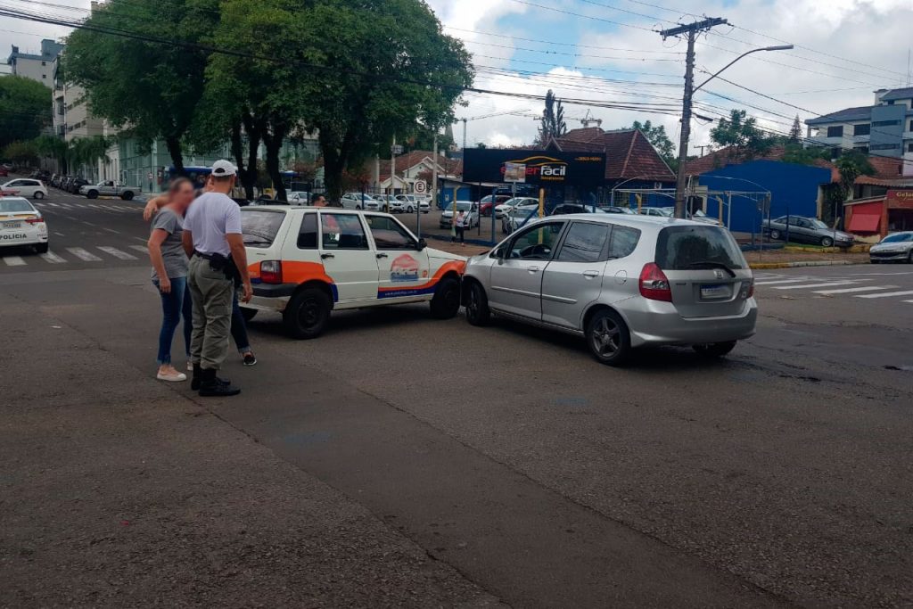 A colisão entre dois veículos deixou o trânsito alterado no final da manhã desta sexta-feira, 31, na esquina das ruas Tenente Coronel Britto e Galvão Costa, nas imediações do Parque da Oktoberfest, no Centro de Santa Cruz do Sul. O acidente, que ocorreu por volta das 11 horas, envolveu um Honda Fit, com placas de Passo do Sobrado, e um Fiat Uno, de Caxias do Sul. Apenas danos materiais foram registrados.