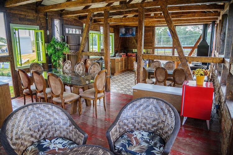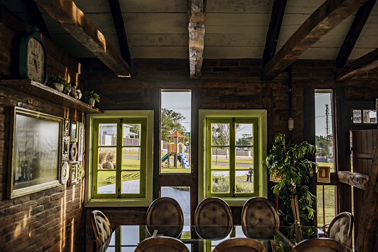 Preservando a história, o espaço foi mobiliado com itens que remetem ao antigo, mas com o conforto da atualidade. Por isso, a opção foi por um fogão à lenha super moderno, além de cadeiras e mesas confortáveis. A proposta é vivenciar a história, porém, sem as limitações da época. Tudo isso aliando praticidade e sofisticação, com móveis que dão um ar vintage para o lugar. Hoje a Casa do Lago representa um elo entre o novo e confortável – com apartamentos diferenciados em meio ao azul do lago – com o resgate ao passado, proporcionado pela casa no estilo enxaimel. A intenção é justamente unir a história de 120 anos com a modernidade e a vida de hoje.