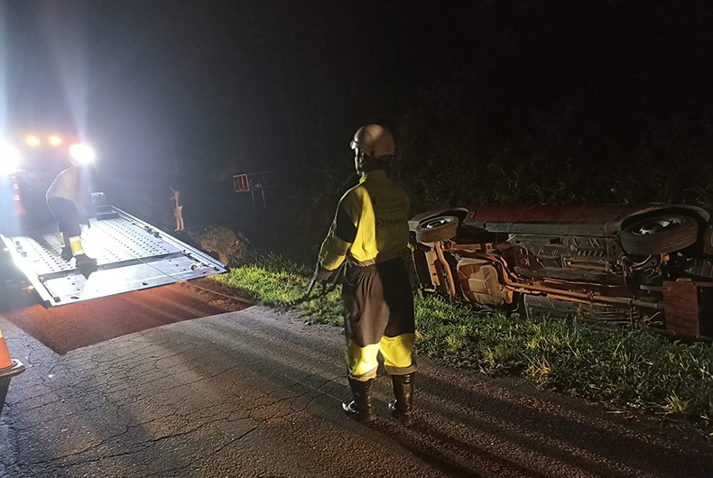Porém, visualizou dois indivíduos, um deles armado, saindo de um beco. Assustado, o morador de Mariana Pimentel entendeu que tinha caído no golpe e que não receberia o valor pelo produto, mas sim seria vítima de um assalto. Foi quando arrancou com o veículo pelo acostamento da rodovia, vindo a perder o controle e capotar em uma valeta. Os bandidos então fugiram do local em um veículo modelo sedan de cor preta. As vítimas sofreram lesões pelo corpo. O homem ainda teve um corte no rosto.