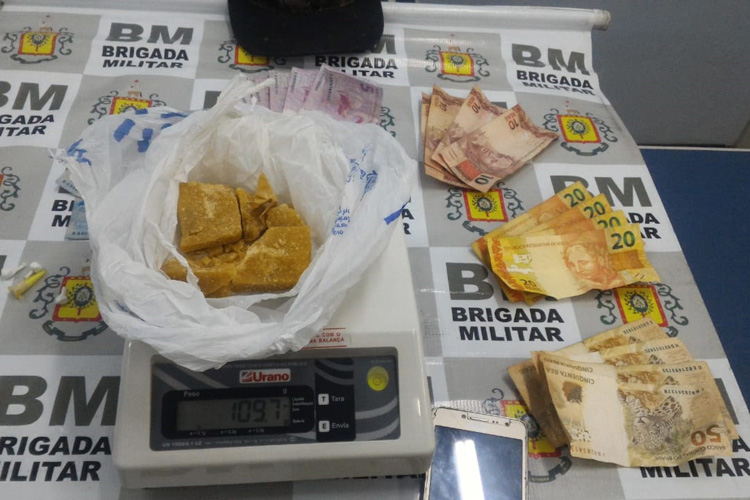 Foi feita uma barreira policial na rodovia e o condutor do veículo foi abordado. A passageira tentou se desfazer de 109,7 gramas de crack, mas não conseguiu. Nos bolsos das roupas dela, os policiais encontraram três buchas e um pino de cocaína. Além das drogas, também foram apreendidos R$ 355,00.