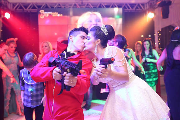 O casamento de Robson e Laila era planejado desde 2016, mas foi apenas alguns dias antes da festa que tiveram esta ideia. Foi quando eles passeavam pela Rua 25 de Março, em São Paulo, e viram as máscaras à venda que pensaram em trazer esta encenação da série para o casamento.