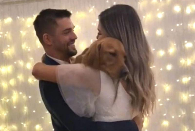 Nas imagens, o cachorro aparece sendo segurado entre o noivo e a noiva e, no começo, com a cabeça apoiada no ombro da tutora. Depois, parecendo demonstrar felicidade, dá ‘lambeijos’ no tutor. Enquanto dançam ao som de Thinking Out Loud, música de Ed Sheeran, o casal retribui o carinho com um beijo ‘sanduíche’ no animal. A cena encantou os convidados também, que emitem sons de aprovação.