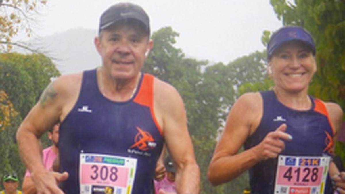 Rosalí Lemos, de 57 anos, e Nildo José Lemos, o Zeca, de 60 anos, são unidos pela corrida de rua. O casal pratica o esporte há oito anos e já participou de muitas provas em diversos lugares, até mesmo fora do Brasil.