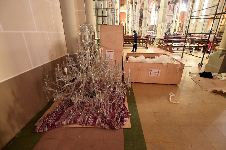 De acordo com o presidente da Comissão Restauro, Paulo Roberto Habekost, serão instalados três lustres de grande porte na nave central, com diâmetro de 1,80 metro por 2 de altura. Confeccionados em cristal transparente, cada um apresenta 50 lâmpadas e pesa 63,3 quilos. Além disso, serão colocados outros três no segundo piso do coro, com 84 centímetros de diâmetro e 15 lâmpadas cada. Os antigos serão reinstalados no hall de entrada, abaixo do coro.