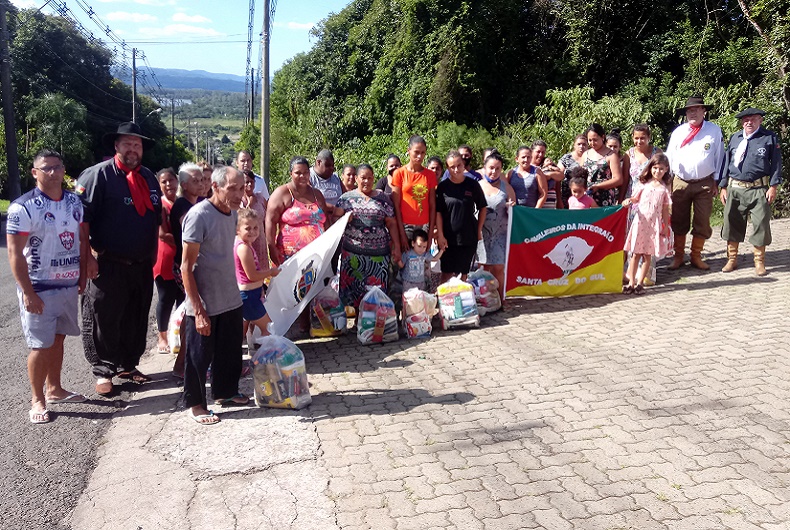 O grupo Cavaleiros da Integração, conhecido por trazer a chama crioula até Santa Cruz do Sul antes da Semana Farroupilha por meio de uma cavalgada desde o local do acendimento oficial, realizou uma ação solidária nesse domingo, 26. Eles entregaram 37 cestas básicas, com 18 quilos cada, para famílias da Rua Adolfo Pritsch, no Bairro Bom Jesus.