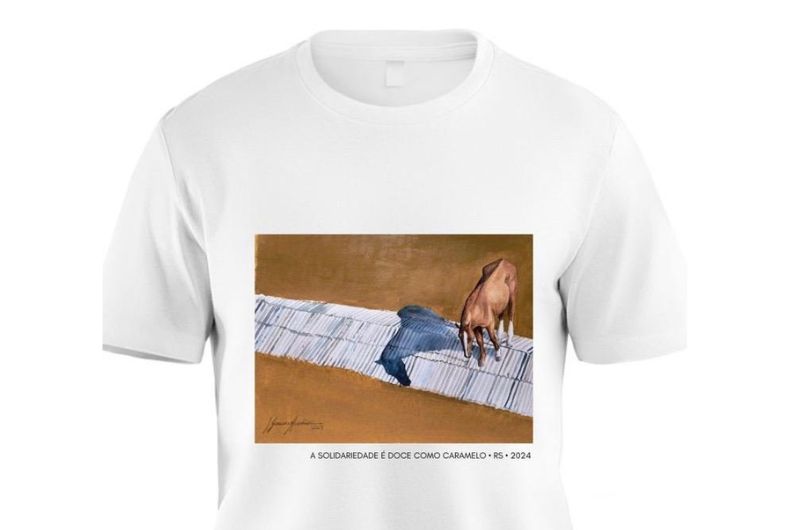Ela virou obra de arte, a pedido do diretor do Programa Cavalos, Jonio Salles, pelas mãos do artista plástico argentino José Acuña. O quadro da imagem foi leiloado num evento solidário no início desta semana por R$ 130 mil, e a obra passou a estampar camisetas e moletons de diversos modelos e tamanhos confeccionadas pela Reserva, cujo lucro será totalmente revertido aos atingidos pelas inundações.
