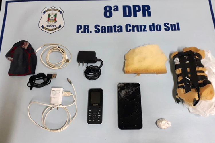Imediatamente a equipe de plantão foi até a cela, onde foram apreendidos dois celulares, dois carregadores de celular e uma porção de substância semelhante à cocaína. O material foi enviado para a Delegacia de Polícia de Pronto Atendimento (DPPA) de Santa Cruz do Sul.