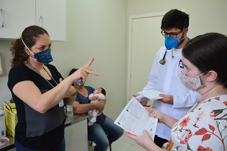 Na semana passada, acompanhada da mãe, dona Eva, e da intérprete de Libras Francine Beatriz da Silva, Ana Clara levou seu bebê, que completou 30 dias, para uma consulta de avaliação no Posto Figueira. Durante todo o pré-natal ela foi assistida por Francine. Desde o ano passado, quando veio com a família de Cachoeira do Sul para residir em Santa Cruz, ela já utilizava o serviço, principalmente para atendimentos na área da saúde pública. Ela tem também um filho de 4 anos, que é autista e precisa de acompanhamento constante.