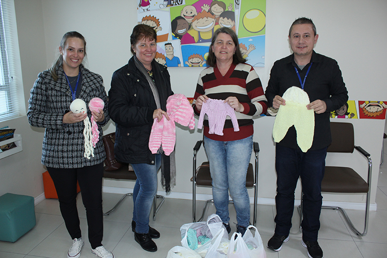 O Hospital Santa Cruz (HSC) recebeu na quarta-feira, 20, a doação de peças de tricô do Centro Cultural 25 de Julho, de Santa Cruz do Sul. As roupinhas de bebê e polvinhos foram recebidos pelos assistentes de projetos e captação de recursos da instituição, Evandro Leal Melo e Tamara Riediger, e serão destinados às crianças internadas na UTI Neonatal e Pediátrica e na Unidade de Cuidados Intermediários.
