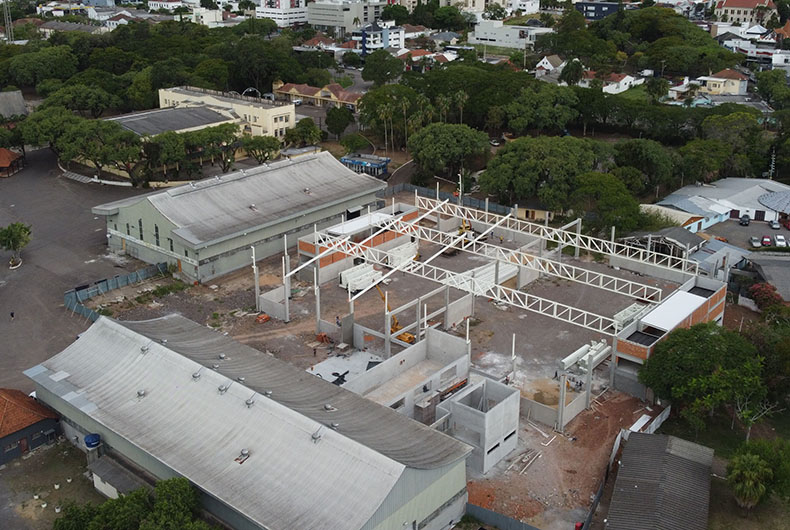 Toda a estrutura do complexo é pré-moldada em concreto com fechamento de alvenaria, bem como partes metálicas e painéis industrializados. Entre reforma e ampliação, a área total será de mais de 7 mil metros quadrados, potencializando os prédios já existentes, com espaços intercomunicáveis. Os trabalhos, que se iniciaram em janeiro do ano passado, tinham previsão de conclusão até outubro deste ano. No entanto, em abril, identificou-se um lençol de água onde o prédio será erguido. Foi necessário fazer a drenagem do terreno, o que alterou o cronograma.