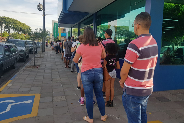 A terceira da fila, Teresinha Thomé, 66 anos, que chegou também às 6h30, estava insatisfeita. “Eu não sabia disso, tomei conhecimento na semana passada. Ontem passei aqui na frente e tinha gente no sol, não tem uma cadeira. Nós temos que fazer como o governo quer, quem não faz tem incomodação. Poderiam disponibilizar um espaço maior.”