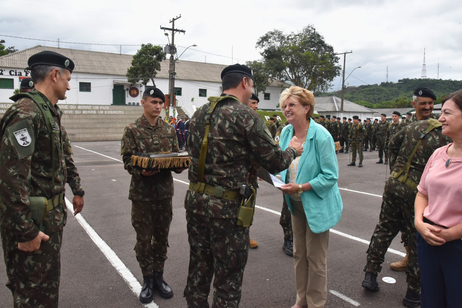 A prefeita de Santa Cruz do Sul, Helena Hermany, junto de outras 34 pessoas, foi agraciada com o Diploma de Amigo do Batalhão, em reconhecimento ao trabalho conjunto de ajuda humanitária realizado durante as enchentes de maio.