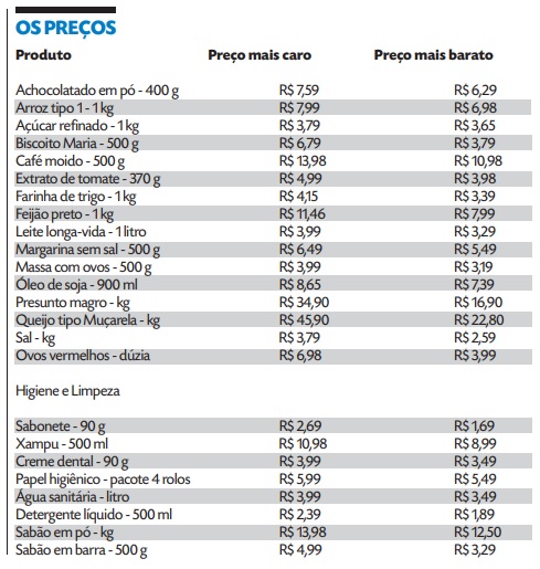 O acompanhamento de preços, iniciado há um ano, mostra que o conjunto de 26 produtos, entre gêneros alimentícios e de higiene e limpeza, acumulou alta acima dos índices da inflação oficial medida para o período. Metade dos itens (13) – em sua maioria, artigos de mercearia utilizados na alimentação básica das famílias – foram os que mais subiram.