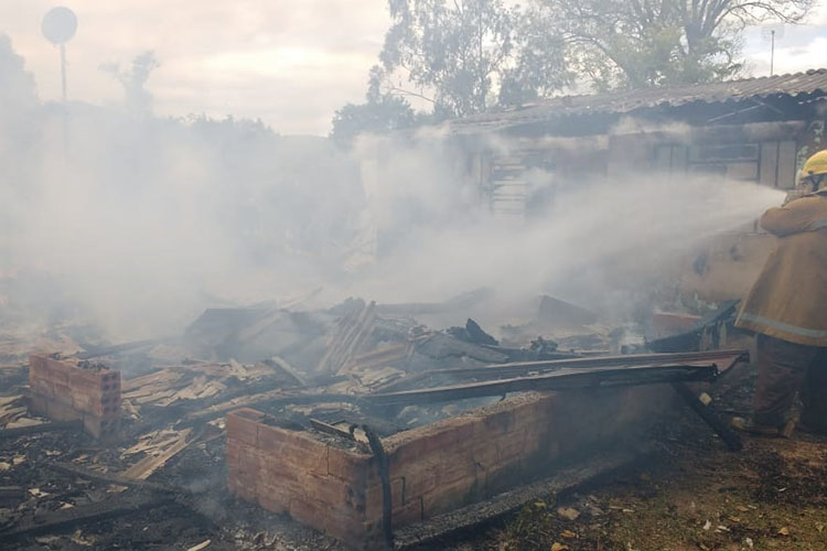 Um chalé localizado na Rua Caetano Sckolaude, em Cerro Branco, foi destruído por um incêndio no início da tarde desta quarta-feira, 24. Conforme o Corpo de Bombeiros Voluntários de Candelária, a corporação foi acionada por volta das 12h35 e, quando chegou no local, só foi possível fazer o rescaldo. Não havia ninguém na casa. A residência do lado também foi atingida na parede lateral e no telhado.