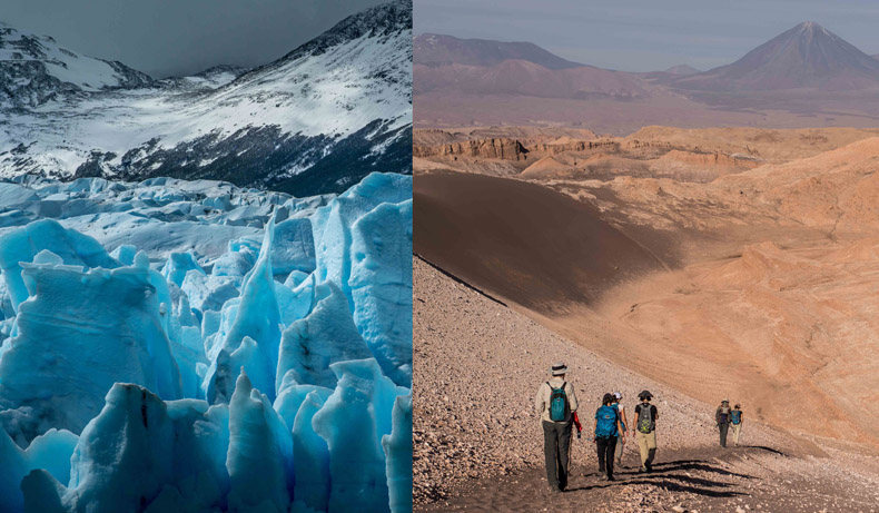 Paisagem das diversas regiões do Chile inclui deserto, geleiras e vulcões ativos