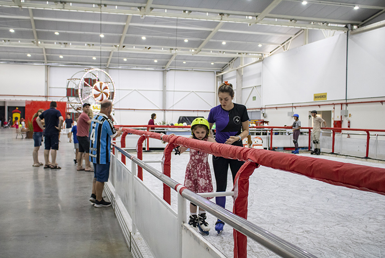 A estrutura foi montada pelo Parque Plim Plim, de Penha, Santa Catarina. De acordo com o supervisor do empreendimento, Cleberson Rocha, Santa Cruz do Sul possui a estrutura ideal para abrigar a pista de patinação no gelo, que precisa ficar em local coberto. Apesar da instabilidade verificada no decorrer de todo o domingo, a presença de famílias foi expressiva no local. Os santa-cruzenses Janete e Jorne Peiter, por exemplo, levaram a filha Mariah, de sete anos, para patinar pela terceira vez. Em entrevista à Gazeta do Sul, Janete disse que Mariah havia patinado pela primeira vez aos cinco anos, em Canoas, e que tão logo soube que Santa Cruz receberia a atração fez questão de trazê-la para repetir a experiência.