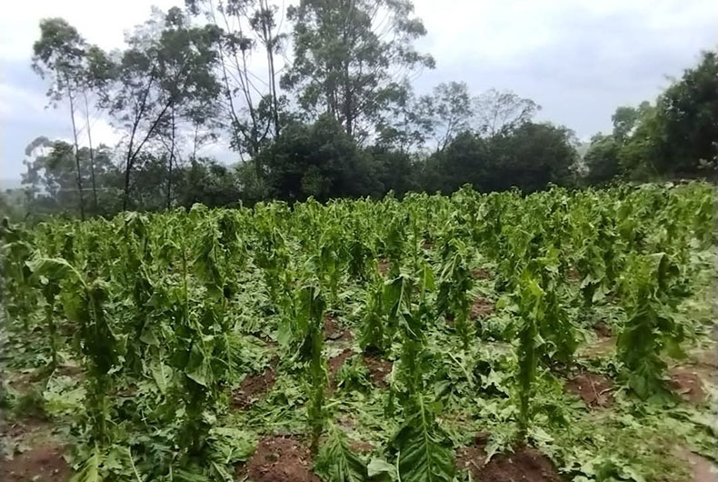 Além do vento, da chuva e dos raios, o granizo provocou prejuízos nas lavouras de tabaco do Rio Grande do Sul. A Associação dos Fumicultores do Brasil (Afubra) recebeu entre domingo e segunda-feira, 2, 422 avisos de sinistros. A região de São Lourenço do Sul foi a mais atingida, com 342 notificações, seguida por Canguçu, com 41. Santa Cruz, Venâncio Aires e Sobradinho somaram 23 avisos.
