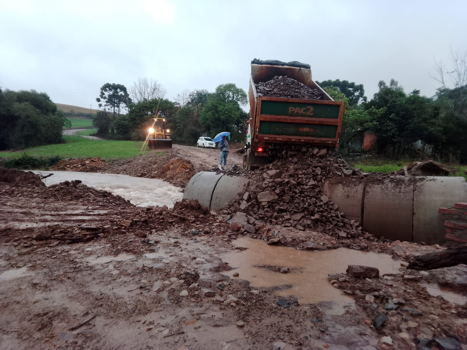 Devido às fortes chuvas, a Secretaria Municipal de Obras tem atuado na desobstrução das estradas rurais e também no mapeamento das áreas afetadas. Conforme o prefeito Alexander Castilhos, também foram registrados muitos danos em bueiros, galerias, cabeceiras de pontes, além de prejuízos em lavouras de inverno. Em publicação realizada nas redes sociais, a administração registra que conta com a compreensão e colaboração de todos durante esse período de recuperação das vias. A prefeitura avalia decretar situação de emergência.