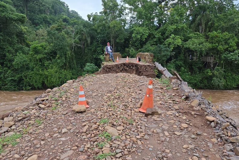 Na localidade de Alto Passa Sete, a cabeceira da Ponte do Império, danificada na enchente do ano passado e consertada em junho deste ano, voltou a apresentar problemas em virtude do transbordamento do arroio. Parte da cabeceira acabou cedendo e caiu. Por isso, o trânsito entre as localidades de Alto Passa Sete e Costa do Rio está interrompido.