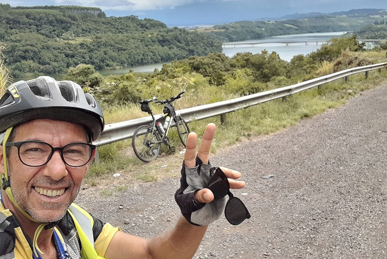 Sobre a exposição aos riscos nas rodovias, o ciclista diz que tem fé em Deus e sabe que precisa estar sempre atento. “O capacete, o colete luminoso, o espelho e outros itens de segurança sempre estão comigo.” Ele frisa que seus dois filhos também se preocupam quando ele entra nessas aventuras. “No início, eles tinham medo do que eu faço. Agora, sentem orgulho. Mas sempre estão vigilantes”, completa.