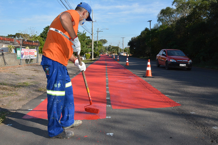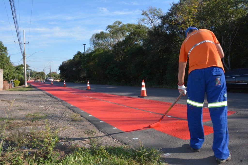 Para proporcionar mais segurança aos usuários das ciclofaixas no Município, a Secretaria de Transportes, Serviços e Mobilidade Urbana iniciou, nesta semana, a pintura das vias. A primeira a receber a intervenção é o trecho de 2,2 quilômetros, da Rua Victor Frederico Baumhardt, no Bairro Dona Carlota.