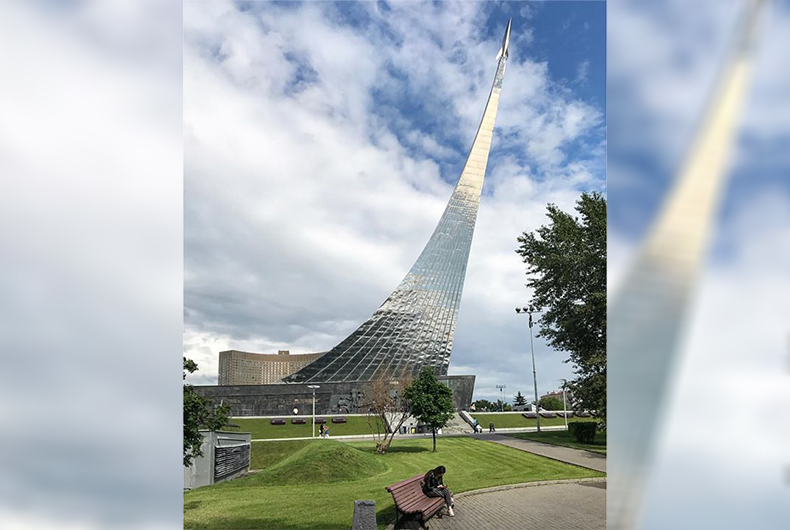 Monumento aos conquistadores do espaço, construído inteiramente em titânio